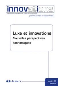 Luxe et innovations Nouvelles perspectives économiquesn°41, 2013/2 - pagesPages 5 à 7ÉditorialPar Joël Thomas RavixPages 9 à 27Quand le luxe devient une question économique : retour sur la querelle du luxe du 18e sièclePar Arnaud DiemerPages 29 à 49Luxe, innovations et crise : les enseignements des économistes classiquesPar Joël Thomas RavixPages 51 à 70Les effets de la consommation de luxe sur la croissance économique : approches par les préférences non-homothétiquesPar Anaïs CarlinPages 71 à 90L'industrie du luxe et l'économie de la connaissancePar Dominique ForayPages 91 à 115Entrepreneurs historiques de l'industrie du luxe et innovation permanentePar Sophie Boutillier, Dimitri UzunidisPages 117 à 137L'inexistence du luxe comme catégorie finie et unifiée : le classement hôtelier en FrancePar Marc DeschampsPages 139 à 152Biens de luxe et innovations en économie socialiste : le cas des habanosPar Rémy HerreraPages 153 à 178Stratégies anti-contrefaçon des entreprises cosmétiques de luxe : accumulation versus valorisation du capital-savoirPar Nejla Yacoub, Blandine LaperchePages 179 à 205L'analyse économique des leviers de performance scolairePar Françoise Larré, Jean-Michel PlassardPages 207 à 222À propos...Pages 223 à 226Sélection